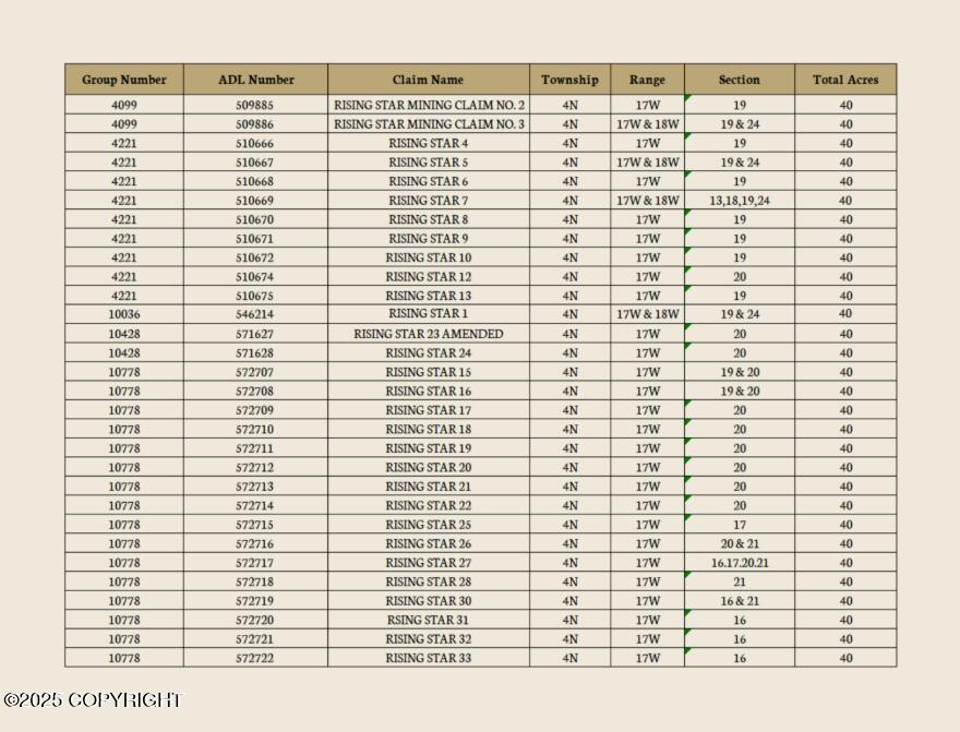 Schedule ShowingPlacer Gold Opportunity — 46 Claims Across 1,840± Acres in Alaska’s Hot Springs Mining District
