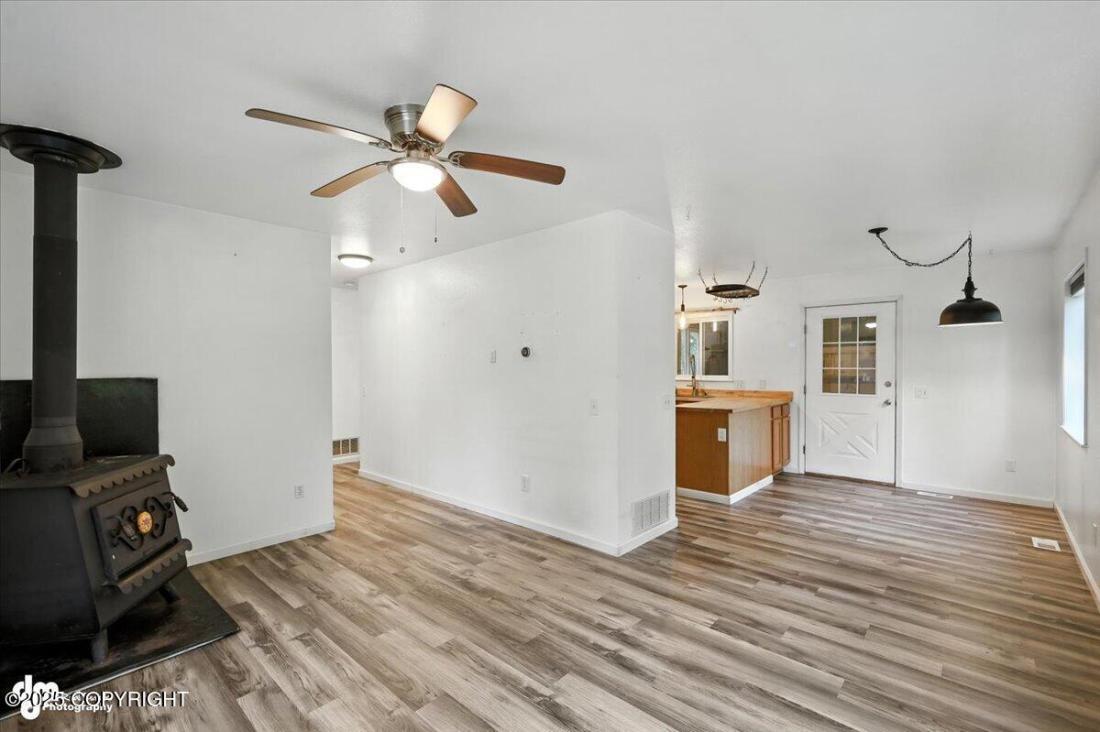 Inside, you'll find updated flooring and a warm, inviting atmosphere highlighted by a wood stove—perfect for chilly Alaskan evenings.