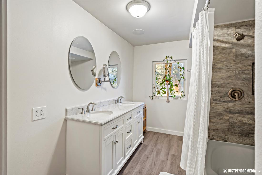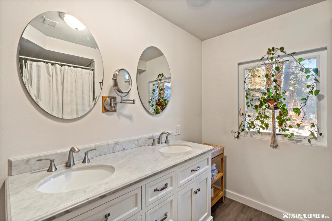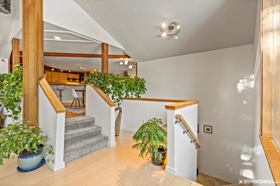 This home features two separate entrances, the downstairs has two bedrooms, W/D, and a full bathroom, the main floor has an open floor plan with hardwood floors, kitchen, dining room, beautifully remodeled full bath with with heated floors, living room boasting massive windows and a view you won't be able to take your eyes off!