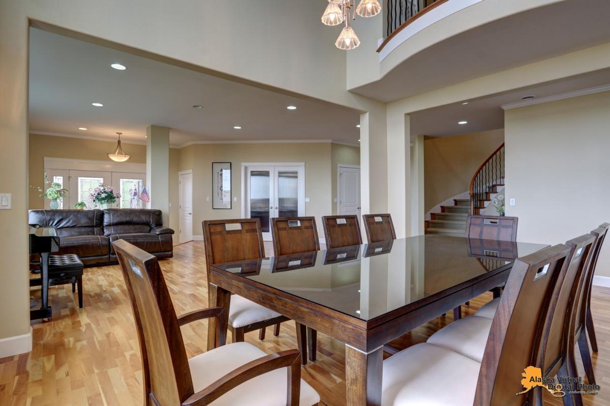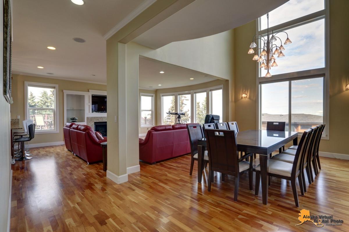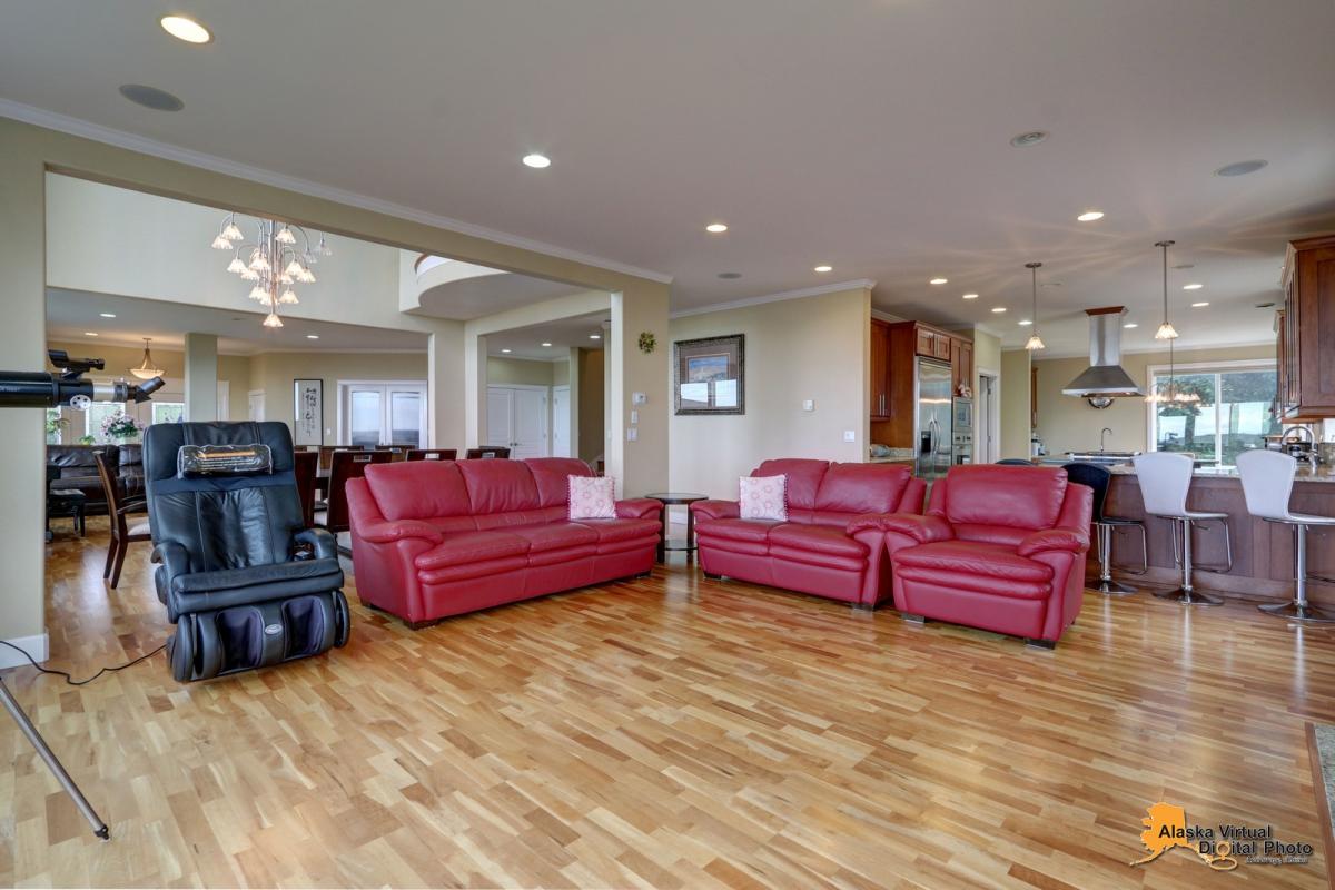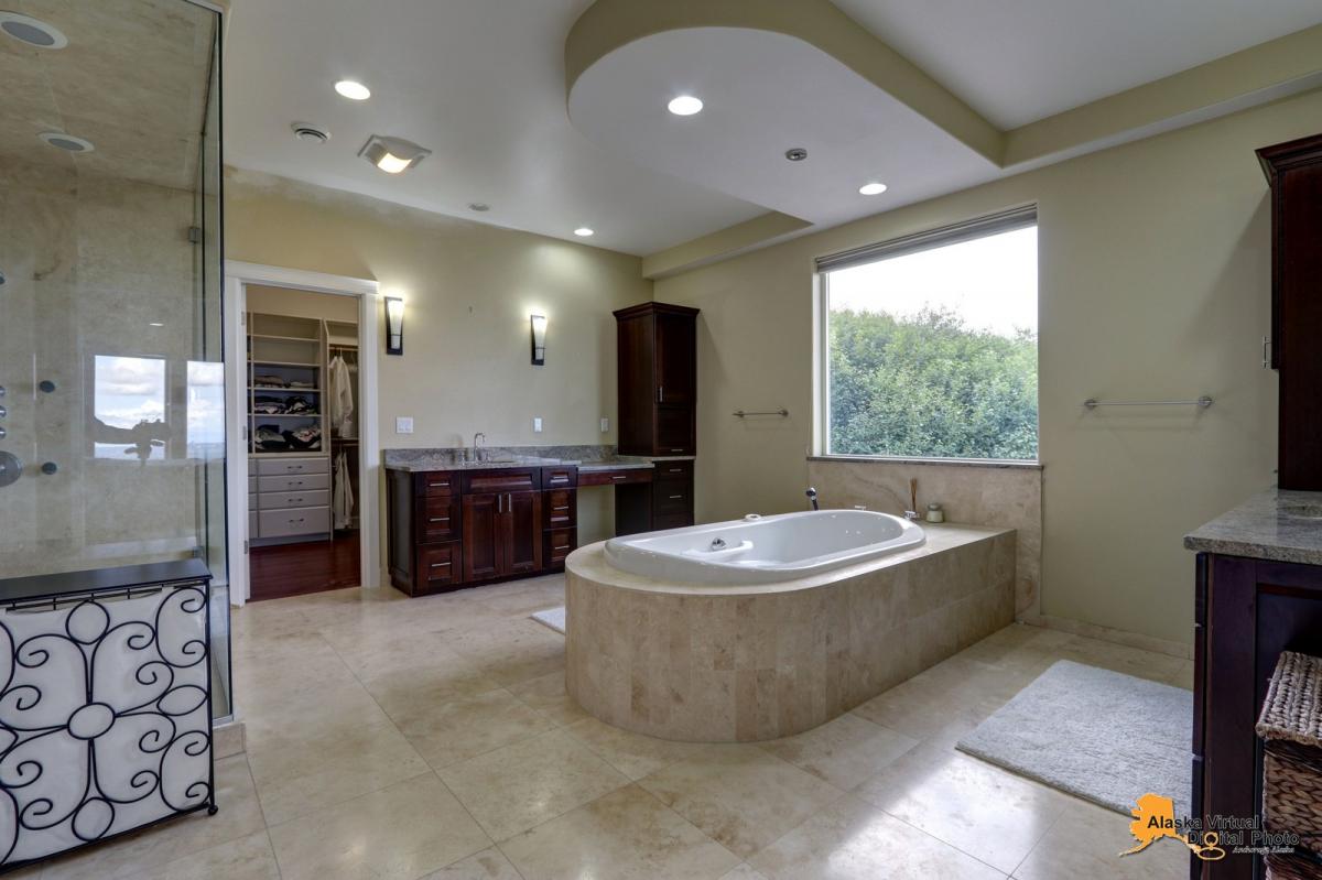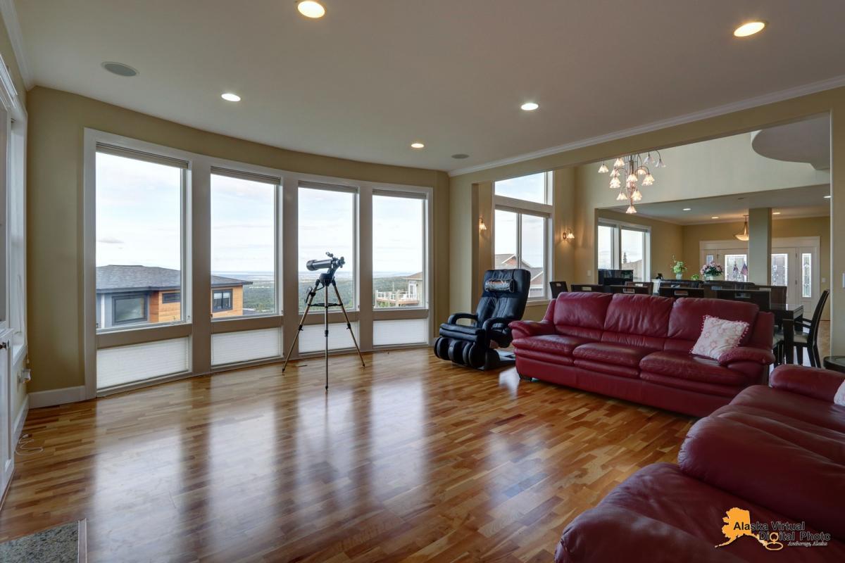 Amazing home in Anchorage's finest gated community which features a four car garage and RV parking, over 6000 square feet of living space with 7 bedrooms and 6.5 baths, an amazing kitchen, a theatre room , steam shower, 1400 sq feet of trex decking, unobstructed views of inlet and city lights, and too many features to list!!