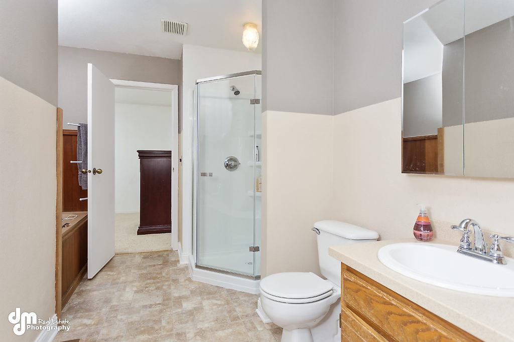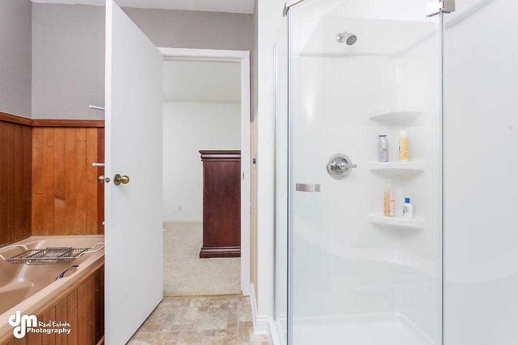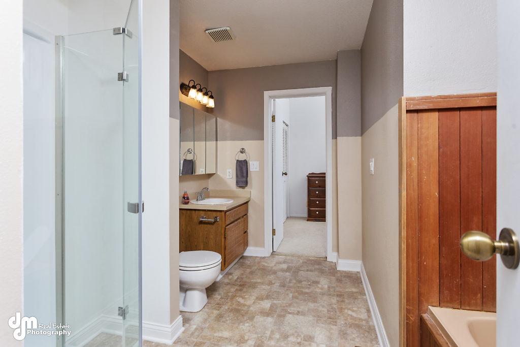one bedroom plus a full bath on main level, two bedrooms & full Jack & Jill bath w/ separate shower & jetted tub on second level.