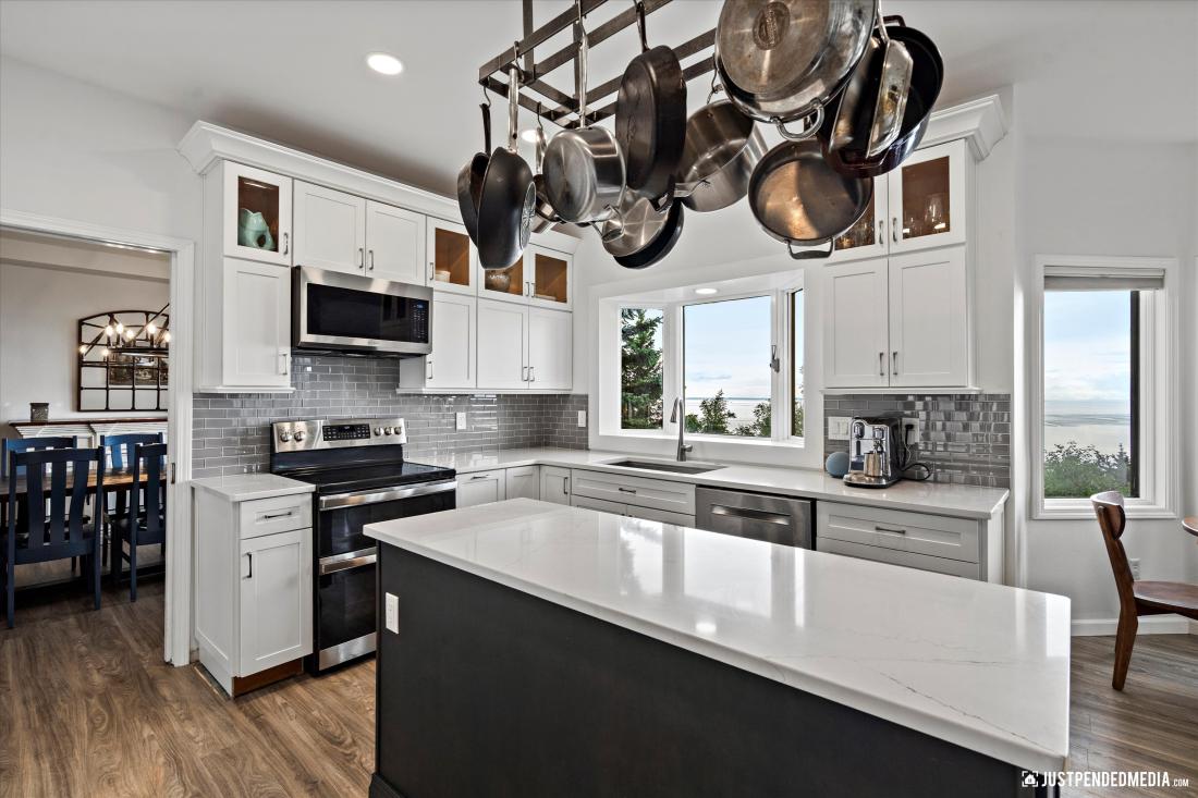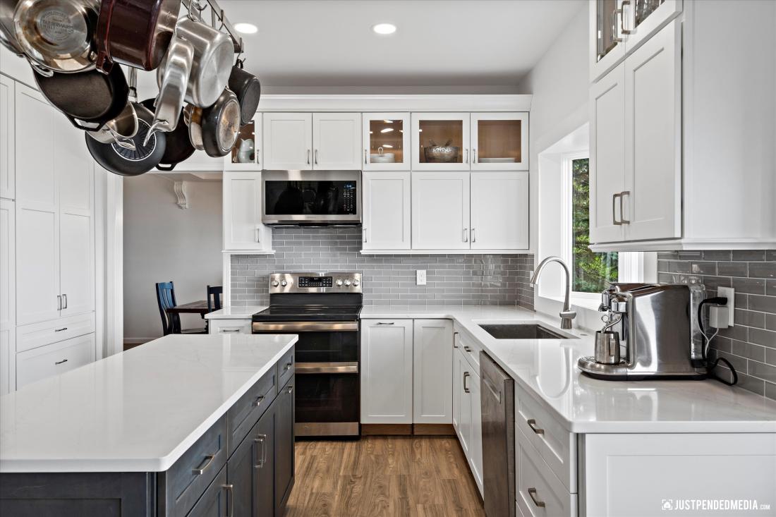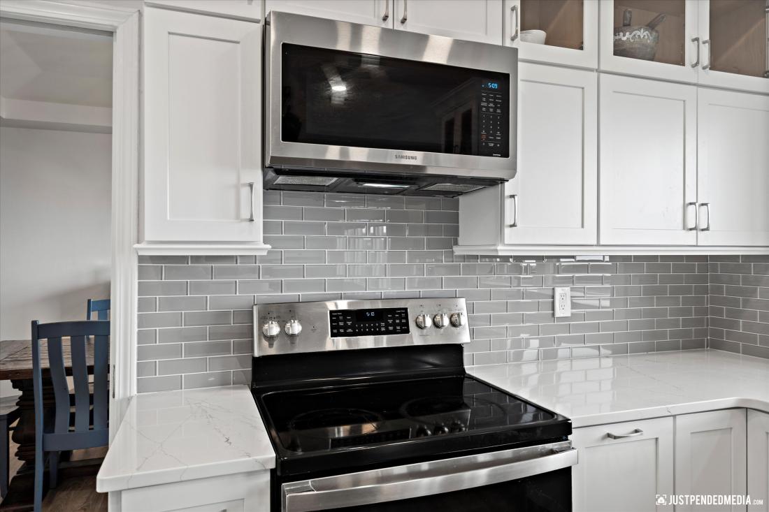 The kitchen has been completely transformed with premium Diamond cabinetry, quartz countertops, and fresh drywall.
