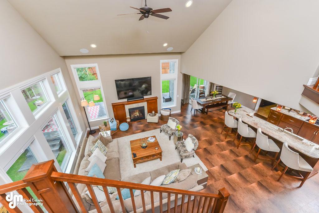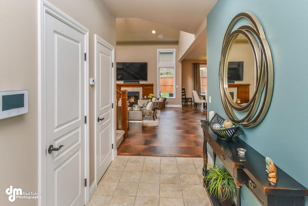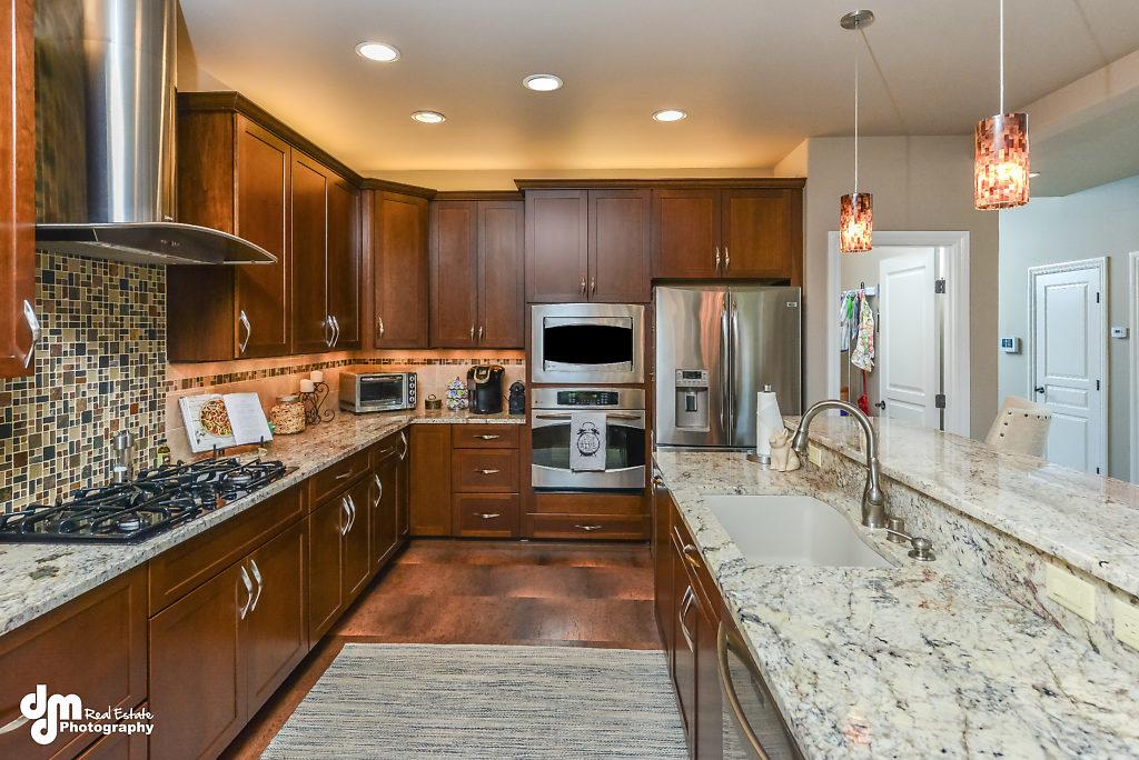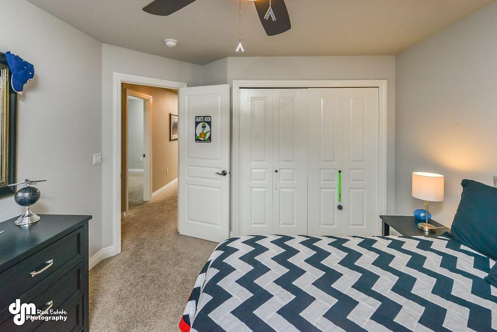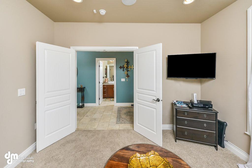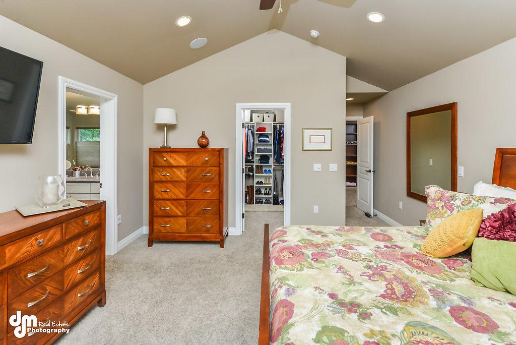den, cork and tile flooring on main floor, over-sized pantry, built-in speaker system,lots of closet space, radiant heat throughout including the garage,