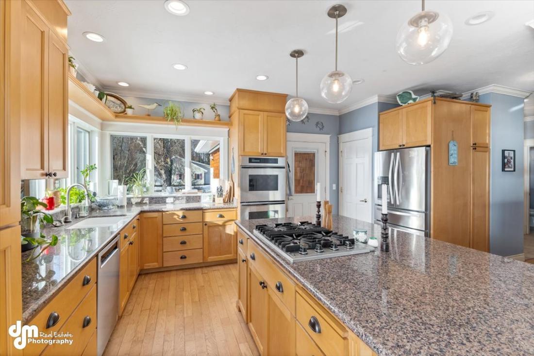 A spacious kitchen with a large island, ample cabinetry, and quality appliances flows seamlessly into the dining and living spaces—ideal for gathering and entertaining.
