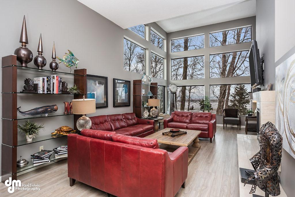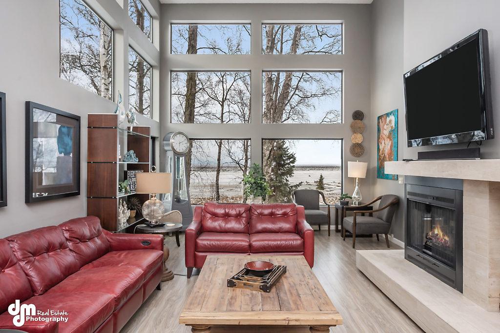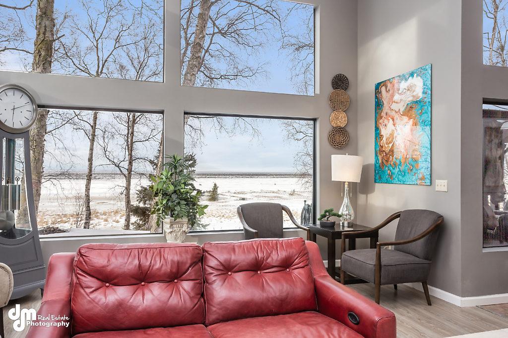 Large windows facing South that overlook the inlet for you to enjoy Alaska's gorgeous sunsets & lots of natural light throughout the day.