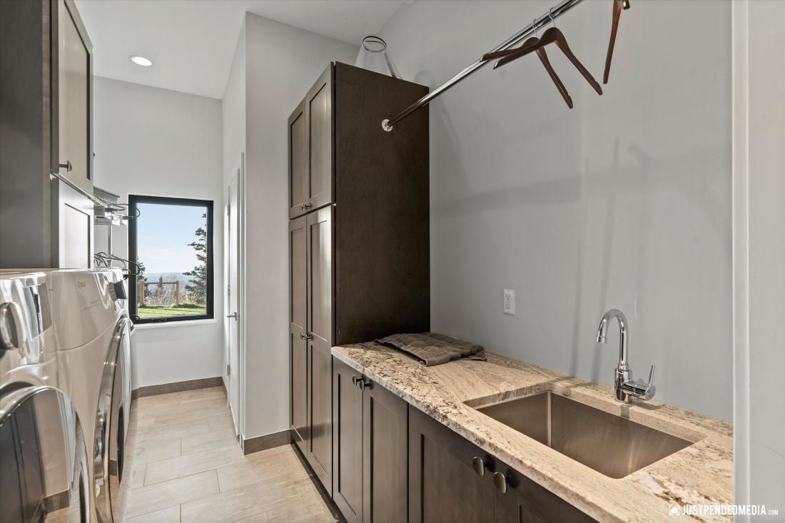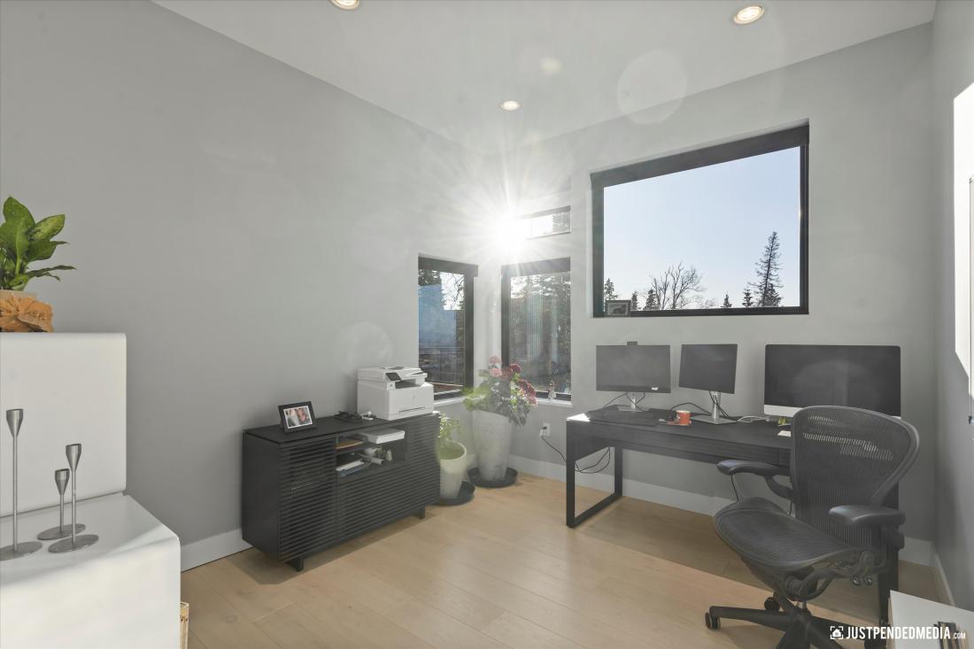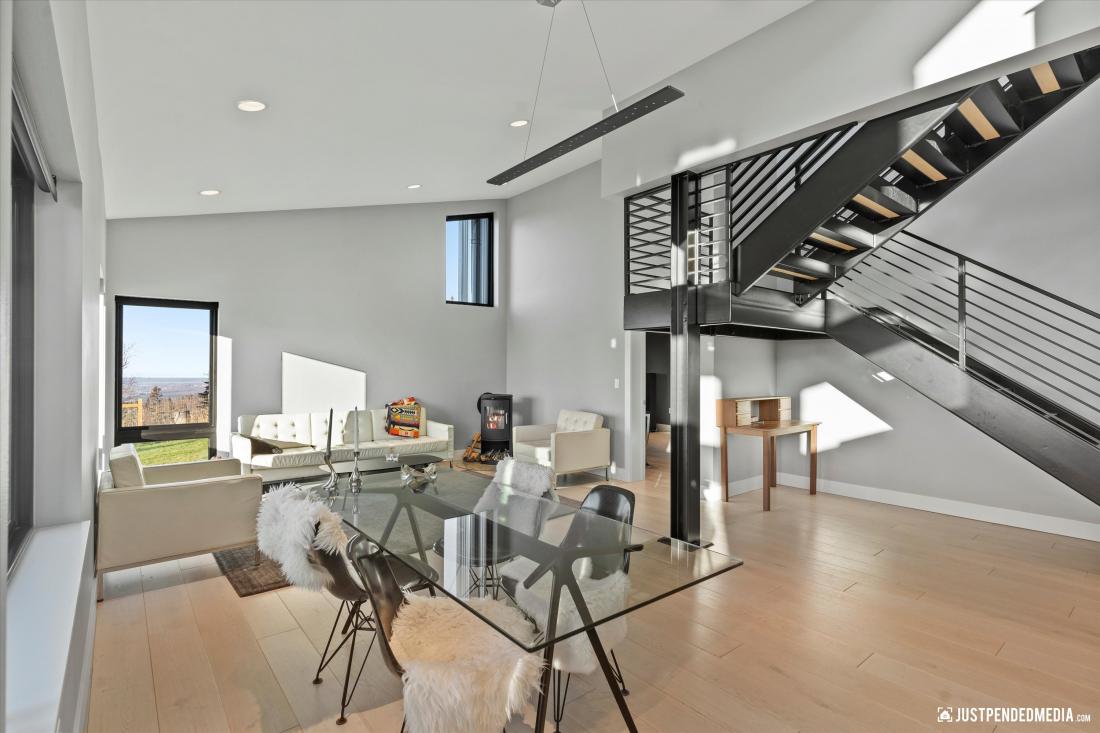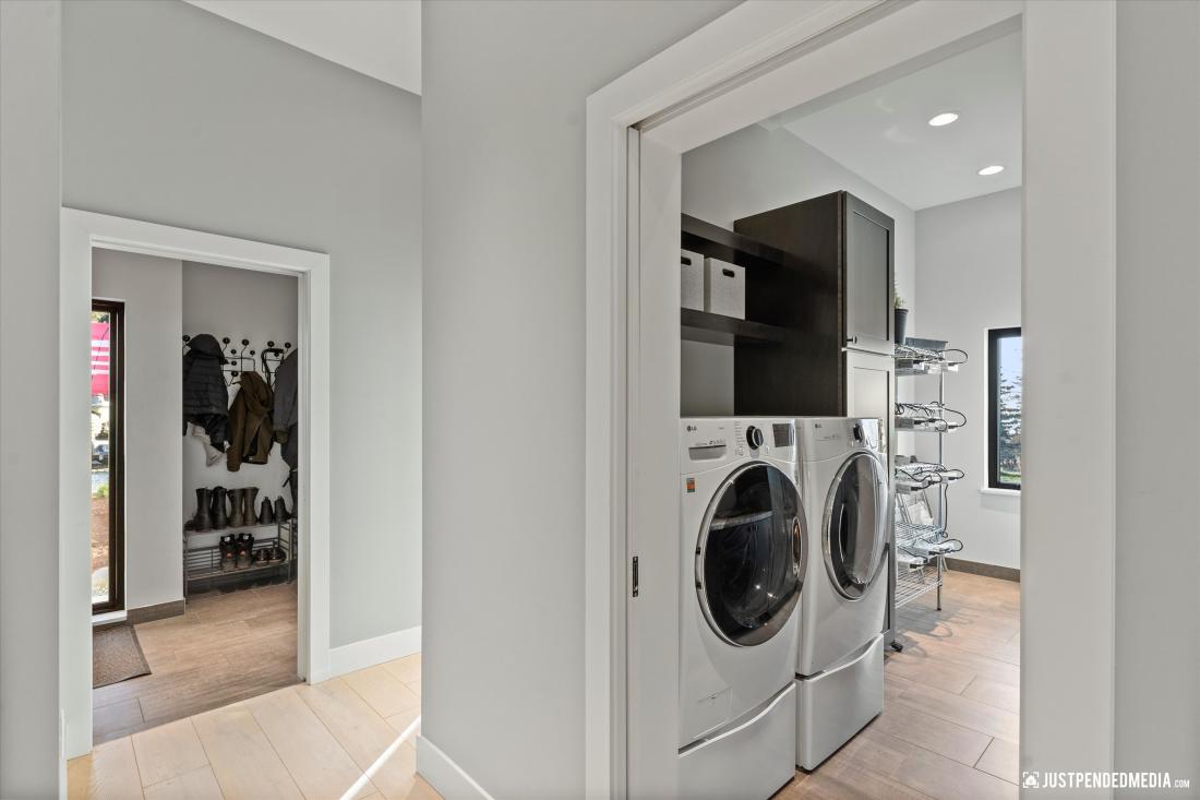 kitchen seamlessly integrated with the living area, a practical laundry room, a versatile office that could easily become an extra bedroom, a comfortable bedroom with an elegantly appointed bathroom, a large mud room/arctic room with plenty of storage and a dog wash.