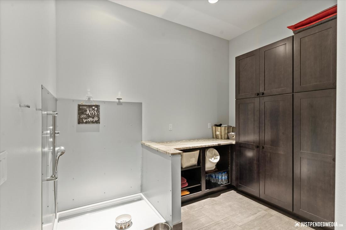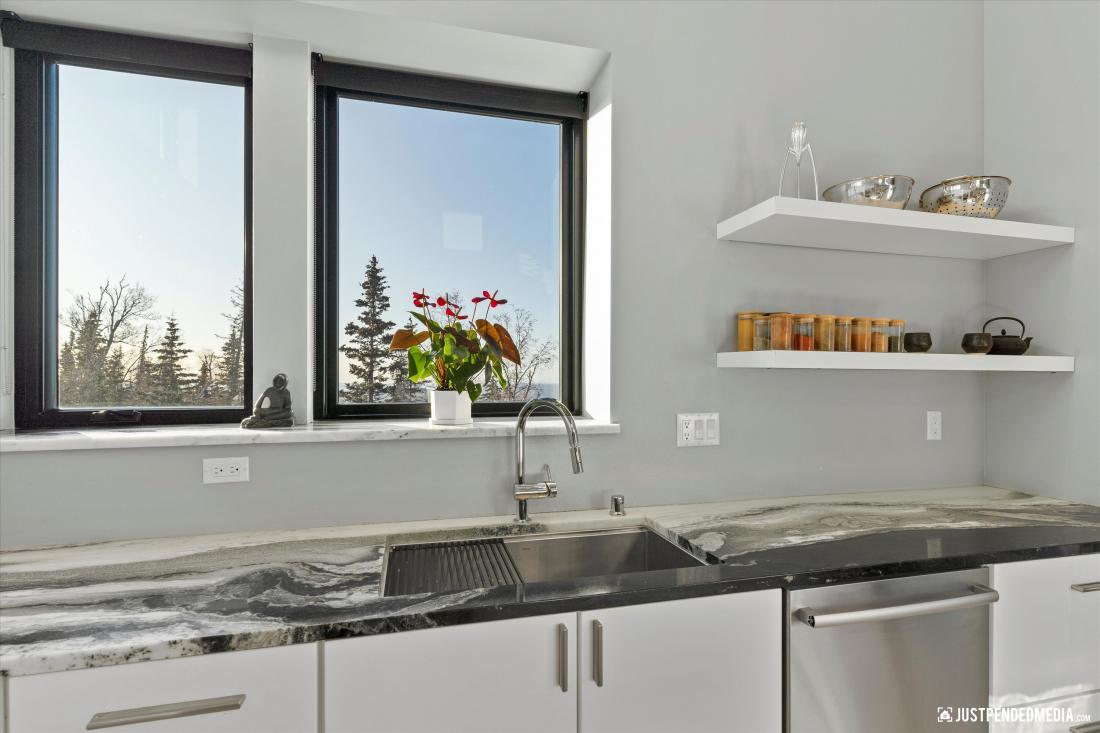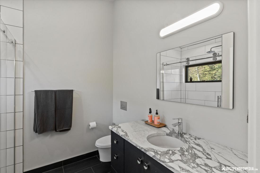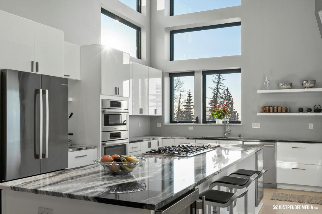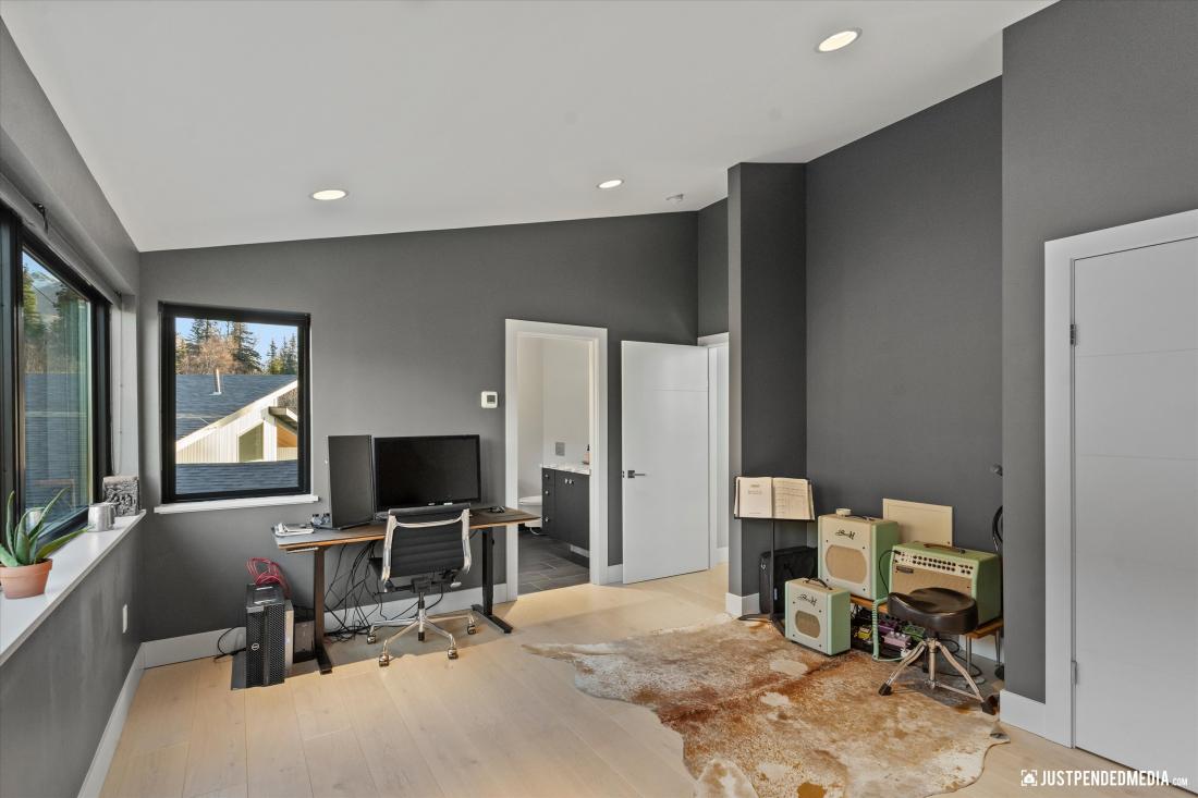 kitchen seamlessly integrated with the living area, a practical laundry room, a versatile office that could easily become an extra bedroom, a comfortable bedroom with an elegantly appointed bathroom, a large mud room/arctic room with plenty of storage and a dog wash.