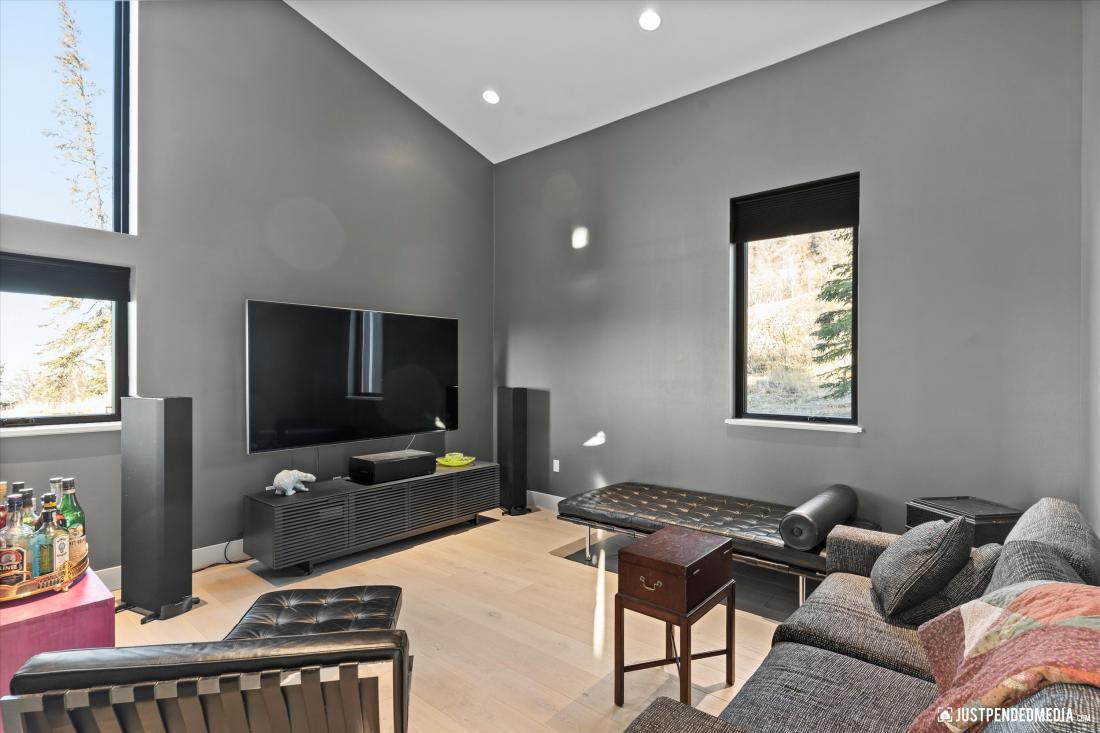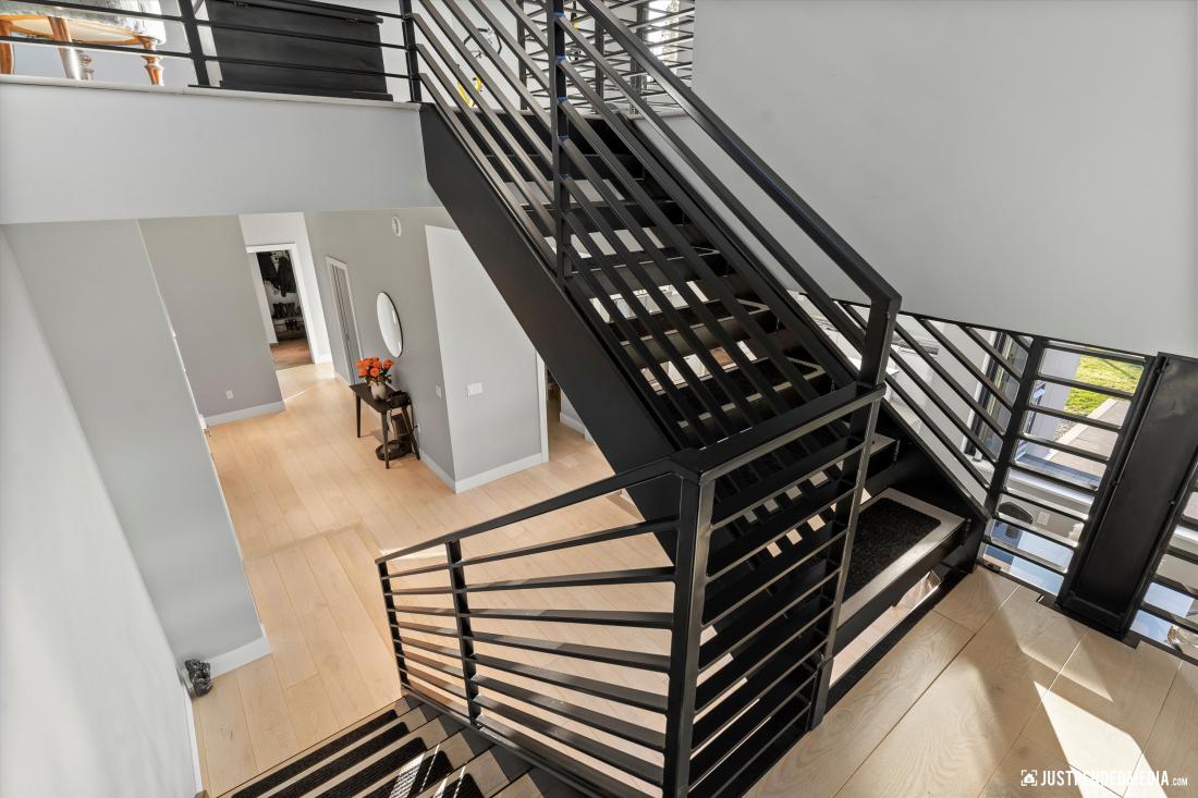 The first floor of this architectural gem showcases a versatile media/dining room, a gourmet