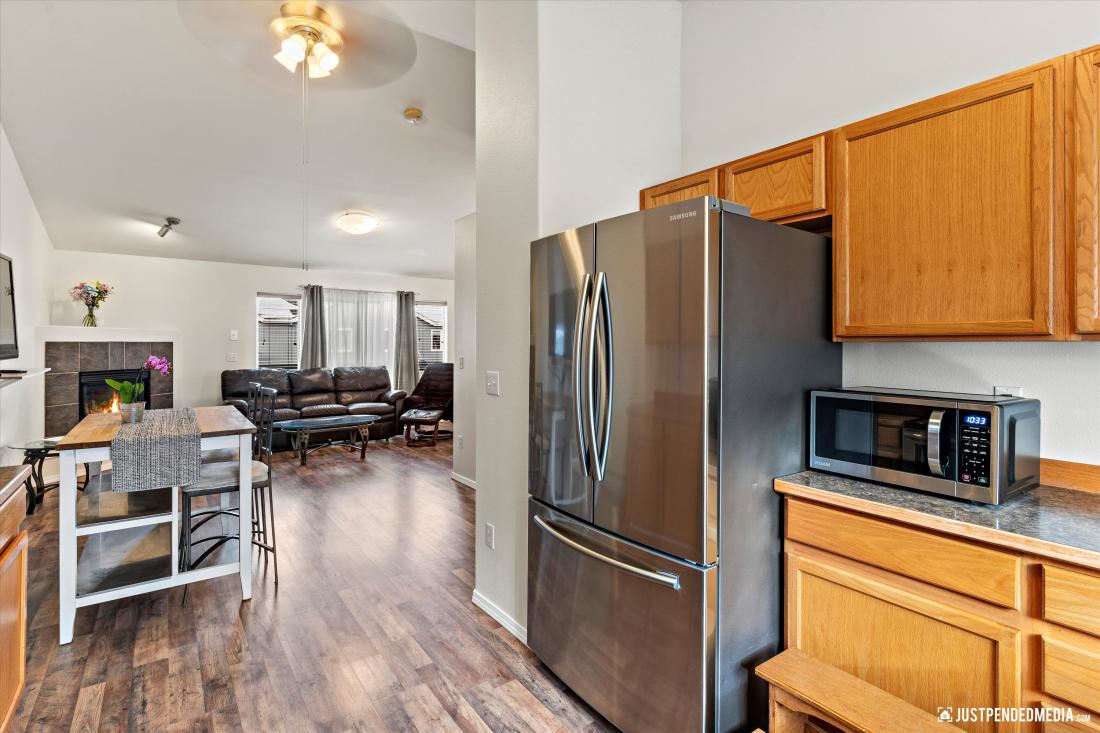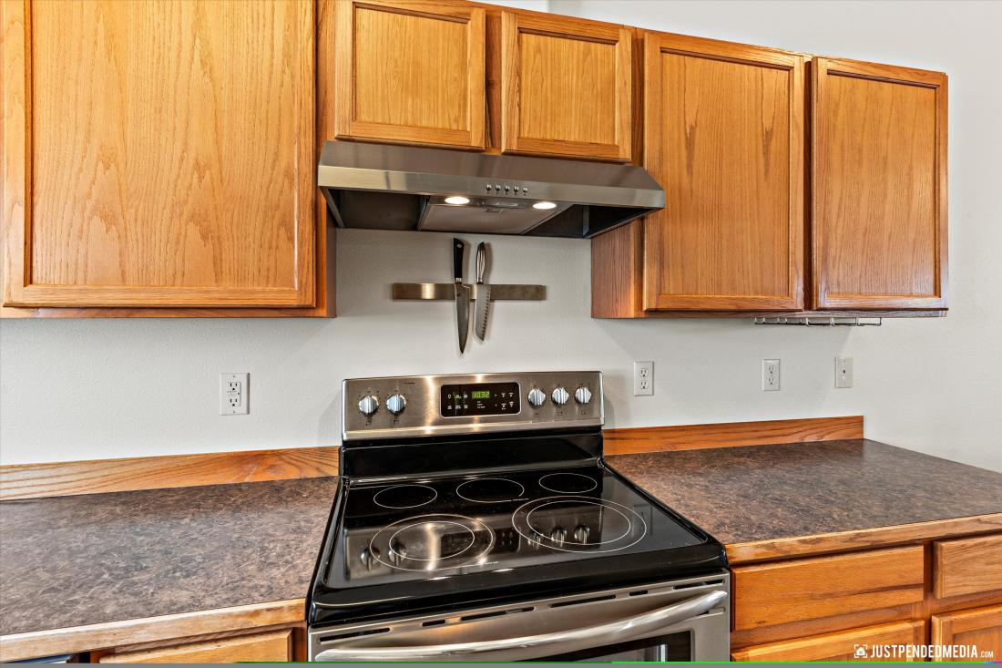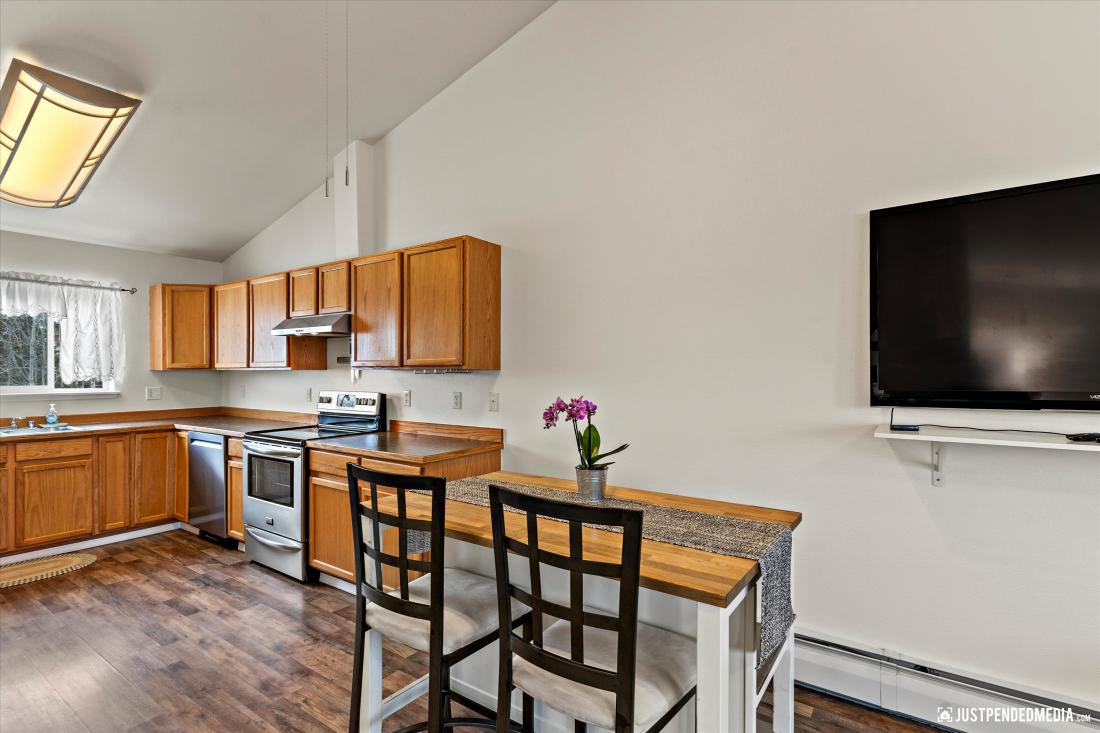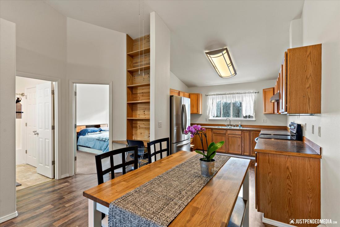 The well-appointed kitchen, complete with modern appliances, offers convenience for culinary enthusiasts.