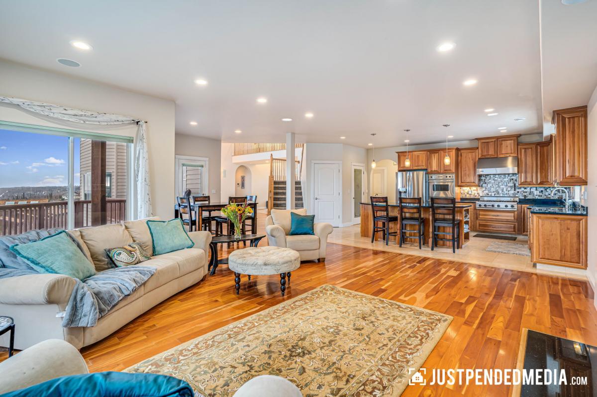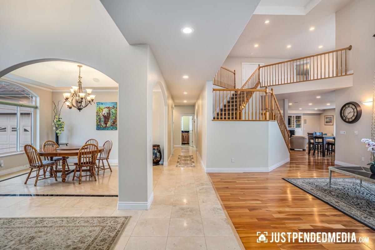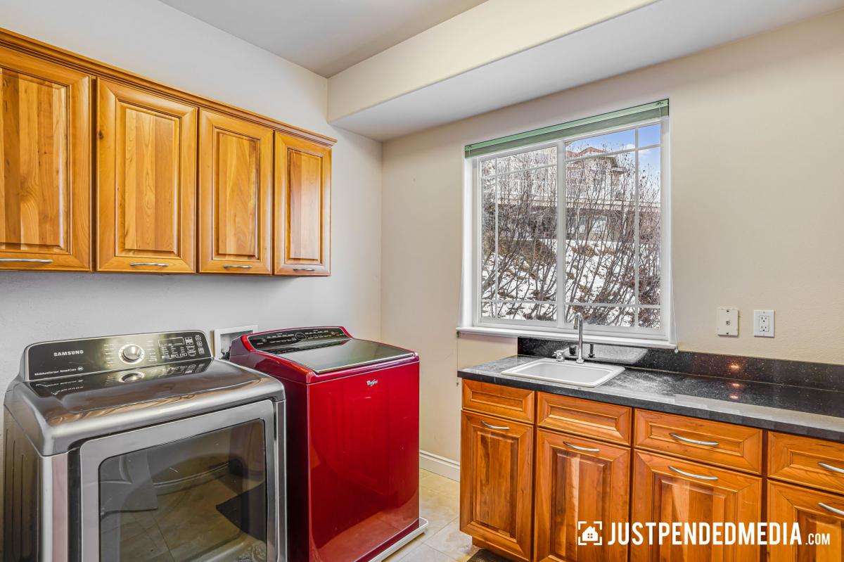 Main floor has hardwood floors, gas fireplace, laundry room, formal dining and two living rooms, central vac and in floor heat throughout, new carpet throughout, kitchen featuring 6 burner Viking cooktop and double Viking Ovens.