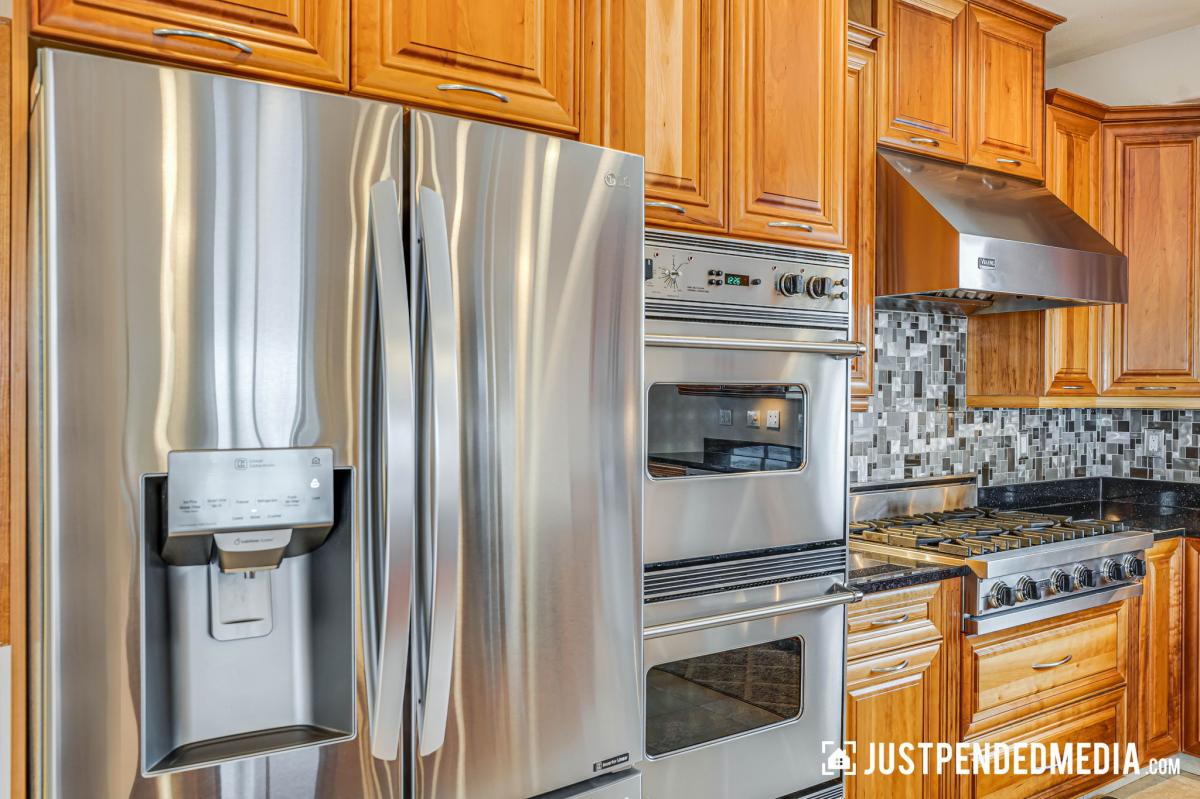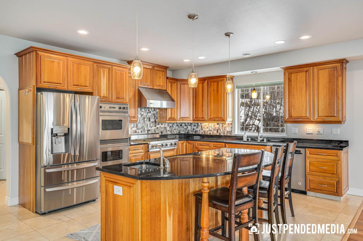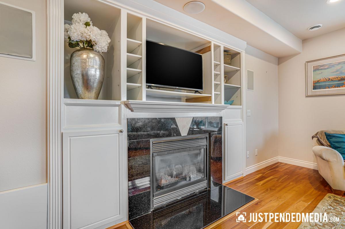 Basement, Central Vac, Den &/or Office, Dishwasher, Double Ovens, Family Room, Gas Fireplace, Granite Counters, Microwave, Pantry, Range/Oven, Smoke Detector(s), W &/or D Hookups, Wet Bar, Window Coverings, Wired Audio